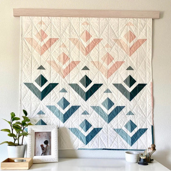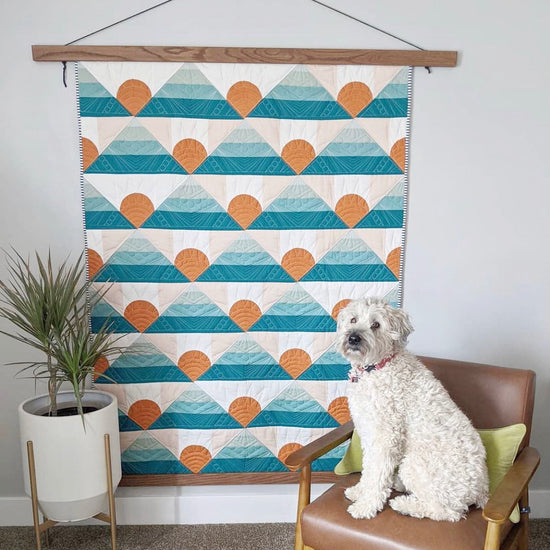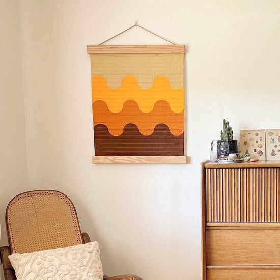 This beautiful quilt is made by @mtnairhandmade and is hung with our Aged Oak Quilt Hanger. These Quilt Hangers are to help you display your quilted works of art on the wall. This is a larger quilt, but the hanger has no problem clamping down on the edge securely and making sure it's straight and flat. You no longer have to hand sew sleeves to the back of your quilt to hang it with a dowel. This is the upgraded and sophisticated way to hang a quilt.