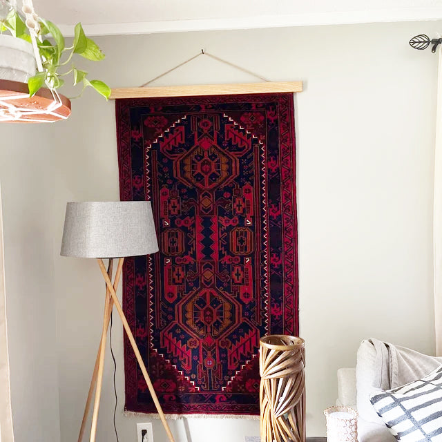 This Tapestry Hanger is made out of solid oak wood and comes in six different stain colors!  It is a great way to hang small or large tapestry pieces.